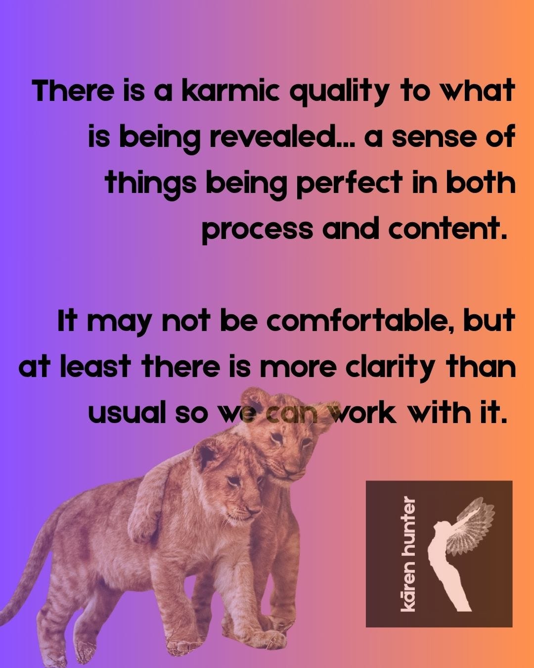 There is a karmic quality to what is being revealed. A sense of things being perfect in both process and content. It may not be comfortable, but at least there is more clarity than usual so we can work with it.